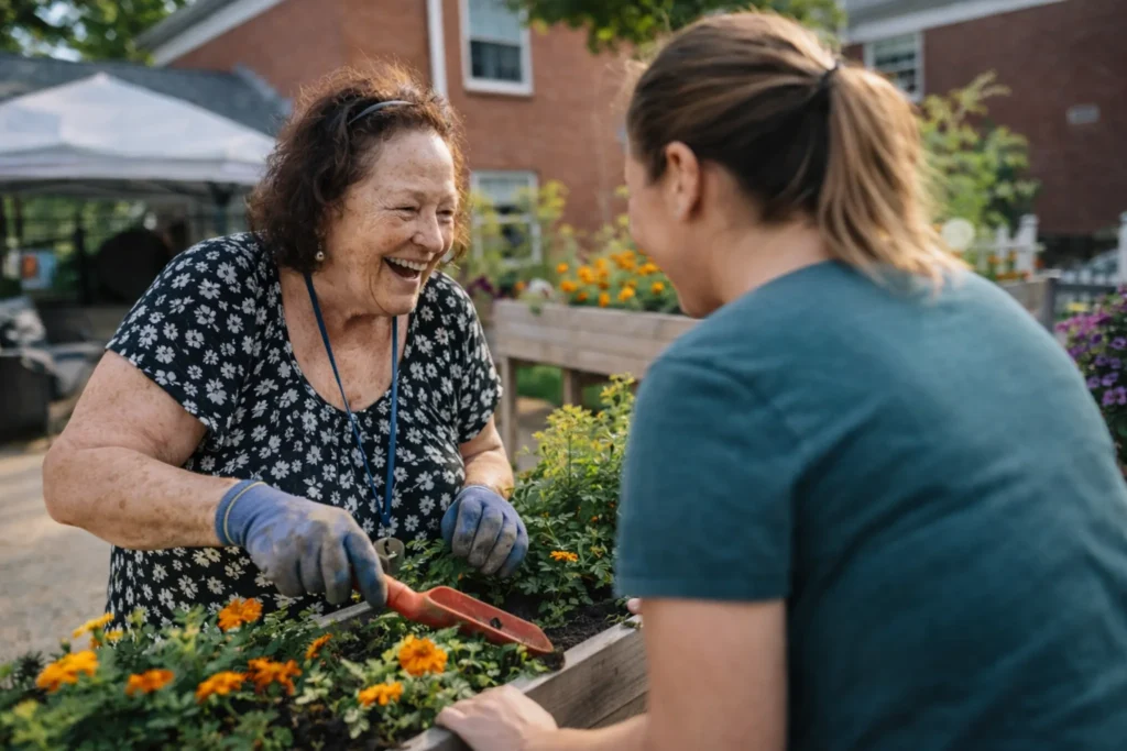 Family members often worry about safety, which is a valid concern, but one we work hard to assuage. Well-designed memory care communities build hobbies around thoughtful safeguards. Outdoor spaces are secured yet open to sunlight. Raised garden beds prevent strain. Art supplies are non-toxic. Tools are adapted with soft grips and close supervision. Safety does not mean limitation, it simply means designing an environment where residents can move freely within appropriate boundaries. When staff members are trained specifically in dementia care, they recognize early signs of frustration and gently redirect before anxiety escalates. That quiet attentiveness makes all the difference.